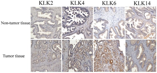 3.3. Immunostaining Analysis of KLK Proteins of Clinical Tissues