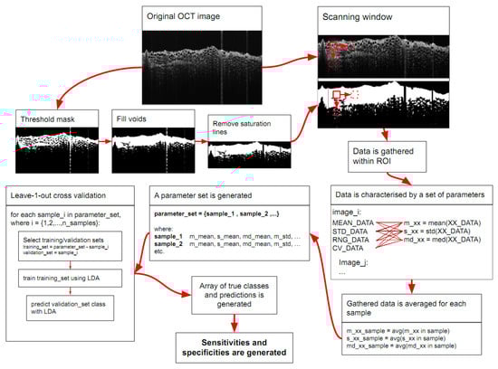 - Čiževskis, O.; Cugmas, B.; Viškere, D.; Melderis, M.; Liepniece-Karele, I.; Yao, J.; Tamošiūnas, M. Tumour classification with optimized sliding window size for OCT imaging. In Optical Coherence Tomography and Coherence Domain Optical Methods in Biomedicine XXVI, Proceedings of the SPIE BIOS, San Francisco, CA, USA, 22 January–28 February 2022; SPIE: San Francisco, CA, USA, 2022; Volume 11948, p. 119480S. [Google Scholar] [CrossRef]
