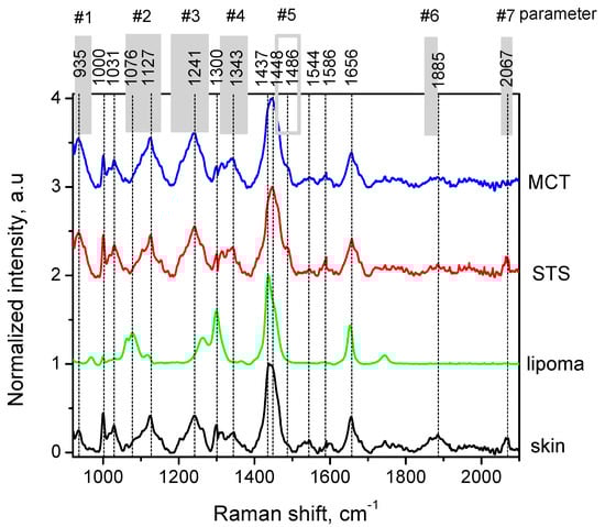 - Cheng, W.-T.; Liu, M.-T.; Liu, H.-N.; Lin, S.-Y. Micro-Raman spectroscopy used to identify and grade human skin pilomatrixoma. Microsc. Res. Tech. 2005, 68, 75–79. [Google Scholar] [CrossRef]