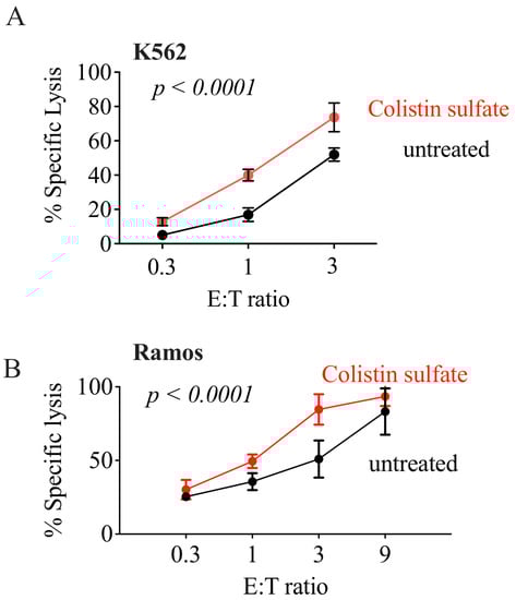 Taken together, these results show that colistin improves the activity of NK cells against several cell lines of a different origin.