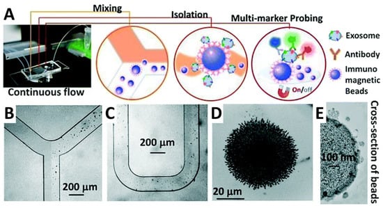 - Zhao, Z.; Yang, Y.; Zeng, Y.; He, M. A microfluidic ExoSearch chip for multiplexed exosome detection towards blood-based ovarian cancer diagnosis. Lab Chip 2016, 16, 489–496. [Google Scholar] [CrossRef] [PubMed]