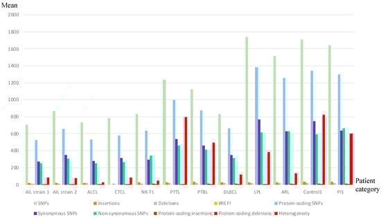 Mean genetic variations and heterogeneity determination for all categories of patients.