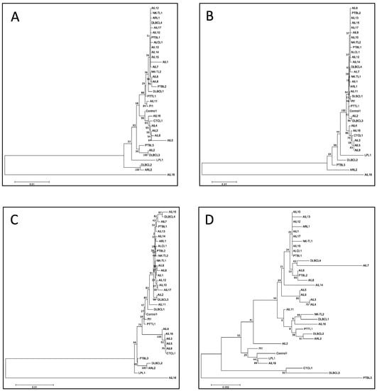 3.5. Phylogenic Analysis Confirmed the Existence of at Least Two Different Groups of EBV among AITL Biopsies