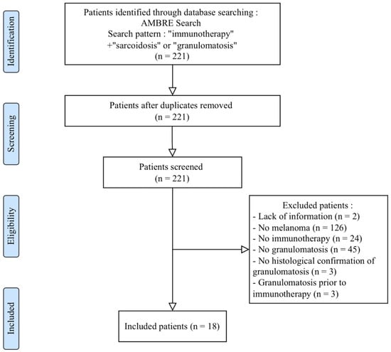 Exclusion criteria included patients presenting with granulomatosis prior to the start of immunotherapy as well as lack of histological confirmation of granulomatosis.