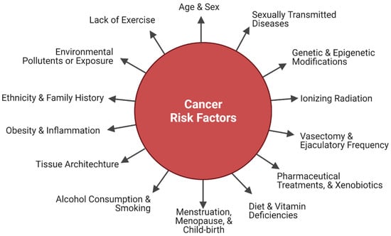 The worldwide burden of cancer incidence and mortality is considerable and is projected to increase despite the progress made in cancer diagnosis, treatment, and management. Of the well over 200 different types of human cancers, breast cancer (BC) and prostate cancer (PC) are among the top cancers owing to their unique features encompassing their origin, acquired mutations, gene expression patterns, modified transcriptional and signaling networks, metabolic activities, the impact of their microenvironments, and host immune responses and overall health (e.g., infections) [1,2,3,4,5,6,7,8]. In this short overview, we aim to compile a brief review of the current global cancer burden, the pathological complexity, risk factors, and treatment options for BC and PC, and some future perspectives. Further, this timely, and relevant overview of the literature has educational value for academics and clinicians.