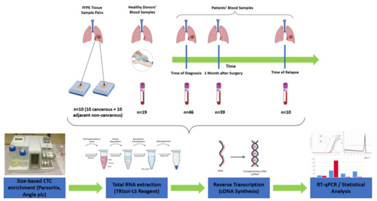 - Krebs, M.G.; Hou, J.-M.; Sloane, R.; Lancashire, L.; Priest, L.; Nonaka, D.; Ward, T.H.; Backen, A.; Clack, G.; Hughes, A.; et al. Analysis of Circulating Tumor Cells in Patients with Non-small Cell Lung Cancer Using Epithelial Marker-Dependent and -Independent Approaches. J. Thorac. Oncol. 2012, 7, 306–315. [Google Scholar] [CrossRef]