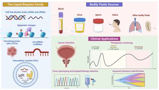Schematic representation of liquid biopsy composition and application. Credit: Created with BioRender.com (accessed on 3 June 2022).
