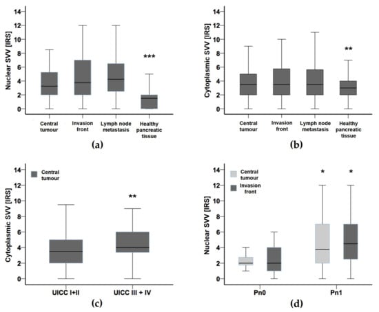 3.2. Survivin Expression in Pancreatic Ductal Adenocarcinoma