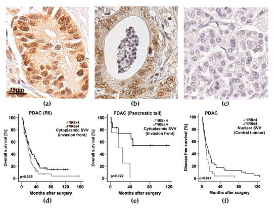 - Zhou, L.; Lu, J.; Liang, Z.Y.; Zhou, W.X.; Yuan, D.; Li, B.Q.; You, L.; Guo, J.C.; Zhao, Y.P. High nuclear Survivin expression as a poor prognostic marker in pancreatic ductal adenocarcinoma. J. Surg. Oncol. 2018, 118, 1115–1121. [Google Scholar] [CrossRef] [PubMed]