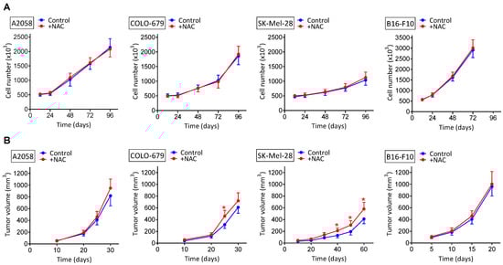 3.1. NAC Supplementation Does Not Increase the Growth of Melanoma Xenografts