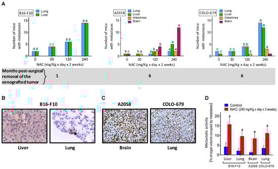 Obrador E, Salvador-Palmer R, López-Blanch R, Oriol-Caballo M, Moreno-Murciano P, Estrela JM. N-Acetylcysteine Promotes Metastatic Spread of Melanoma in Mice. Cancers. 2022; 14(15):3614. https://doi.org/10.3390/cancers14153614