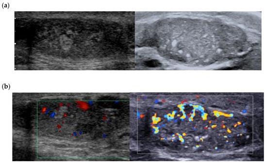 - Auer, T.; De Zordo, T.; Dejaco, C.; Gruber, L.; Pichler, R.; Jaschke, W.; Dogra, V.S.; Aigner, F. Value of Multiparametric US in the Assessment of Intratesticular Lesions. Radiology 2017, 285, 640–649. [Google Scholar] [CrossRef]