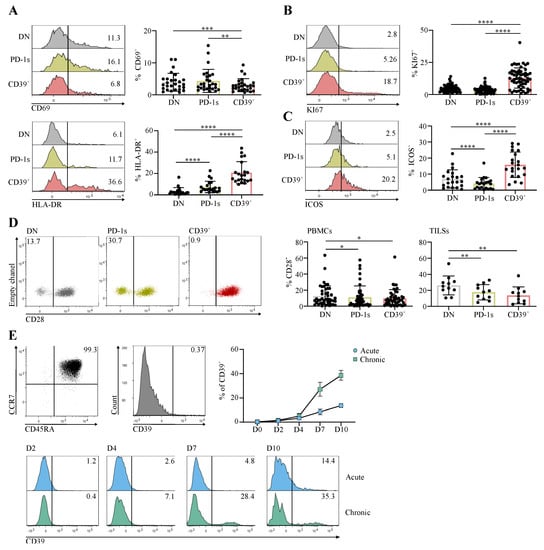 3.2. The Circulating PD-1+CD39+ CD4 T-Cell Subpopulation Is Enriched in Activated and Proliferating Cells That Were at an Early Differentiation Stage