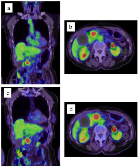 - Maemura, K.; Takao, S.; Shinchi, H.; Noma, H.; Mataki, Y.; Kurahara, H.; Jinnouchi, S.; Aikou, T. Role of positron emission tomography in decisions on treatment strategies for pancreatic cancer. J. Hepato-Biliary-Pancreat. Surg. 2006, 13, 435–441. [Google Scholar] [CrossRef]