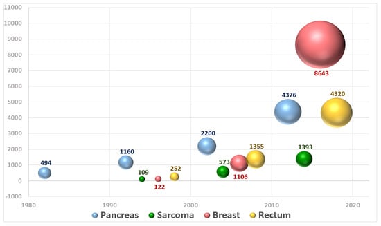 - Sole, C.V.; Calvo, F.A.; Ferrer, C.; Pascau, J.; Marsiglia, H. Bibliometrics of intraoperative radiotherapy: Analysis of technology, practice and publication tendencies. Strahlenther. Onkol. 2014, 190, 1111–1116. [Google Scholar] [CrossRef] [PubMed]