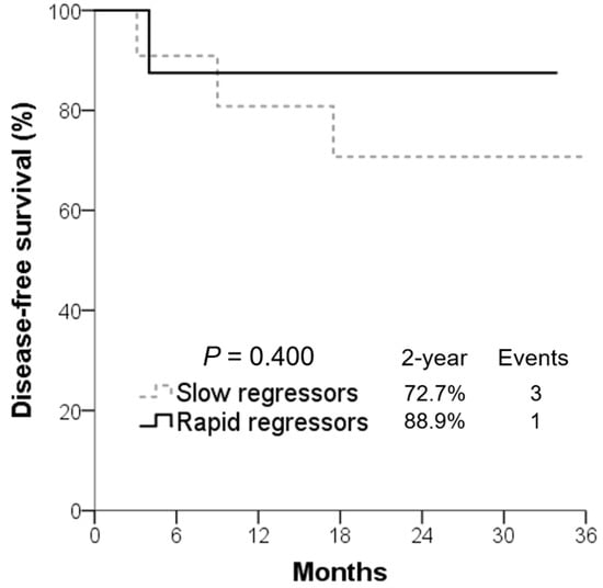 Rapid regressors had numerically superior disease-free survival rate compared to slow regressors.