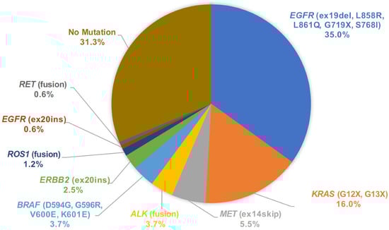 1. Kris, M.G.; Johnson, B.E.; Berry, L.D.; Kwiatkowski, D.J.; Iafrate, A.J.; Wistuba, I.I.; Varella-Garcia, M.; Franklin, W.A.; Aronson, S.L.; Su, P.F.; et al. Using multiplexed assays of oncogenic drivers in lung cancers to select targeted drugs. JAMA 2014, 311, 1998–2006. [Google Scholar] [CrossRef] [PubMed]
