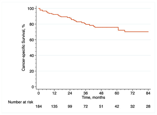 With regard to survival analyses, the Kaplan–Meier method was first used to present RFS, CSS and OS associated with eRC overall, regardless of whether the procedure was performed in an upfront or delayed setting. Observed differences in the baseline characteristics between patients who underwent upfront vs. delayed eRC were further controlled for the inverse probability of treatment weighting (IPTW)-adjusted analyses. Specifically, propensity scores obtained from a multivariable logistic regression model that predicted the probability of undergoing upfront vs. delayed eRC were used to weigh each patient, with the aim of balancing out the baseline characteristics between the two treatment groups [