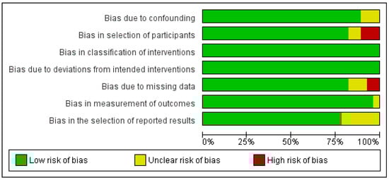 - Sterne, J.A.C.; Hernán, M.A.; Reeves, B.C.; Savović, J.; Berkman, N.D.; Viswanathan, M.; Henry, D.; Altman, D.G.; Ansari, M.T.; Boutron, I.; et al. ROBINS-I: A tool for assessing risk of bias in non-randomised studies of interventions. BMJ 2016, 355, i4919. [Google Scholar] [CrossRef] [Green Version]