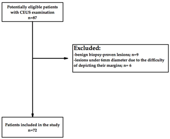 - Zhao, L.-X.; Liu, H.; Wei, Q.; Xu, G.; Wu, J.; Xu, H.-X.; Wu, R.; Pu, H. Contrast-enhanced ultrasonography features of breast malignancies with different sizes: Correlation with prognostic factors. BioMed Res. Int. 2015, 2015, 613831. [Google Scholar] [CrossRef] [PubMed]