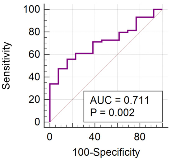 | Parameter | p-Value | AUC | J | Cut-Off | Se (%) | Sp (%) |