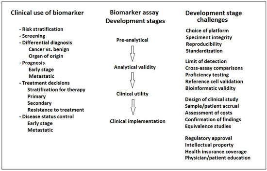 The term liquid biopsy refers to the use of blood and other bodily fluids as a surrogate of tissue samples for diagnosis purposes [1]. Materials for analysis are circulating tumor cells (CTC), exosomes, or circulating free DNA (cfDNA) in blood samples, and shed cells, urinary exosomes, and nucleic acids in urine samples. The main applications of liquid biopsy include early diagnosis, staging, prognosis, follow-up, and assessment of prognostic or predictive biomarkers [1]. On the other hand, the main limitations of using blood samples for liquid biopsy are related to high dilution of diagnostic materials, short half-life in circulation, and challenging isolation of materials, whereas limitations of urine samples are contamination by normal cells, critical sample storage, and contamination by substances affecting PCR reactions [1].