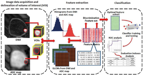 - Zhang, X.; Xu, X.; Tian, Q.; Li, B.; Wu, Y.; Yang, Z.; Liang, Z.; Liu, Y.; Cui, G.; Lu, H. Radiomics assessment of bladder cancer grade using texture features from diffusion-weighted imaging. J. Magn. Reson. Imaging 2017, 46, 1281–1288. [Google Scholar] [CrossRef] [PubMed]