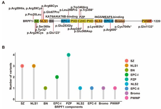 - Yan, K.; Rousseau, J.; Littlejohn, R.O.; Kiss, C.; Lehman, A.; Rosenfeld, J.A.; Stumpel, C.; Stegmann, A.; Robak, L.; Scaglia, F.; et al. Mutations in the chromatin regulator gene brpf1 cause syndromic intellectual disability and deficient histone acetylation. Am. J. Hum. Genet. 2017, 100, 91–104. [Google Scholar] [CrossRef]