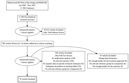 When applying the above-mentioned restrictions regarding pooled analyses, 78 studies were eligible for the pooled analyses.