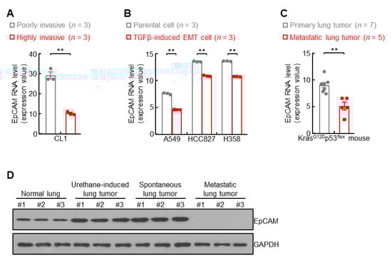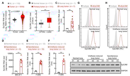 3.1. EpCAM Expression Is Upregulated in Primary Lung Cancer