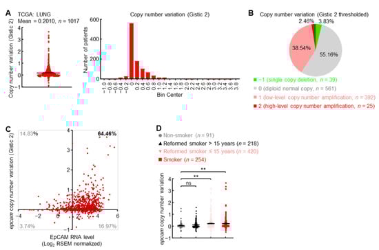 3.2. Gene Amplification Induces EpCAM Expression in Primary Lung Cancer