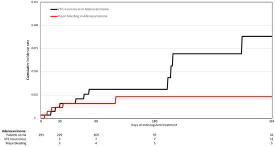 VTE recurrences and major bleeding while on anticoagulant treatment for patients with adenocarcinoma lung cancer.