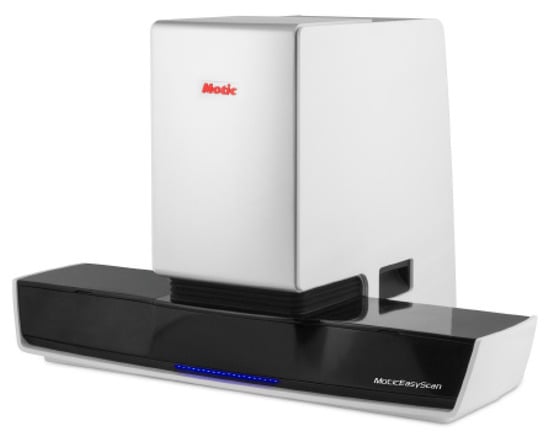 EasyScan (Figure 3) represents a professional microscope-based digital scanner that was developed to scan histopathologic and cytopathologic slides for the purpose of digital storing, transferring, browsing, and finally evaluating histological and cytological specimens diagnostically. It can be remotely controlled (telepathology). It is equipped with a high-precision motion control system, a high-resolution, 5M color CMOS camera, and high-resolution digital imaging. The 20× lens with NA of 0.75 allows a resolution of 0.52 μm/pixel and the 40× lens with 0.75 NA of 0.26 μm/pixel. The device can be equipped with automated slide loaders for six or 100 slides.