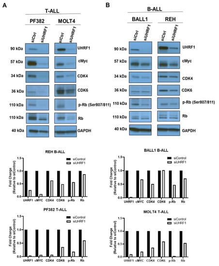 Our study points to a strong association between UHRF1 and ALL, with UHRF1 as a regulator of c-Myc, CDK4/6, and Rb phosphorylation, and provides a rationale for the pursuit of UHRF1 as a potential therapeutic target in ALL.