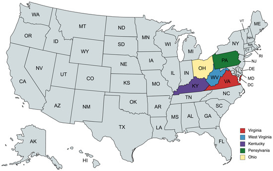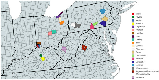 - Appalachian Regional Commission. County Economic Status and Distressed Areas in Appalachia. Available online: https://www.arc.gov/appalachian_region/CountyEconomicStatusandDistressedAreasinAppalachia.asp (accessed on 23 March 2022).