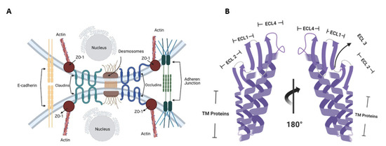 Claudins are important components of tight junctions (TJs), which help in maintaining the integrity of cell membranes and preserving the polarity across cellular sheets (Figure 1A).