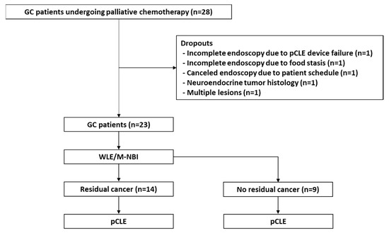Therefore, this prospective study aimed to determine whether adding pCLE to WLE/M-NBI endoscopy could improve the prediction and collection of residual cancer tissues in GC patients receiving chemotherapy.