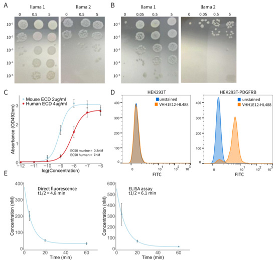 3.3. Generation of a PDGFRB-Binding Nanobody (VHH1E12)