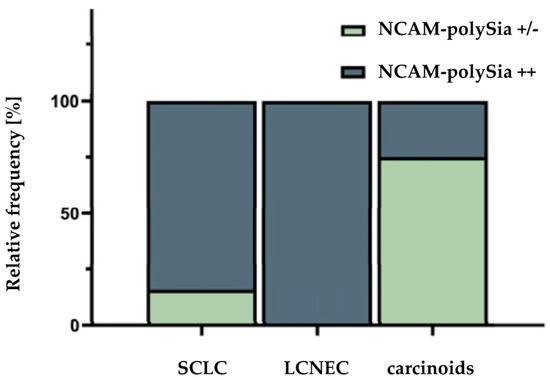 Due to the established role of polySia-NCAM in tumor progression and metastasis, it was assumed that this might also be the case for lung neuroendocrine neoplasms. However, since multiple molecular subtypes of lung neuroendocrine neoplasms have recently been described, a possible role of polySia-NCAM should be investigated in a larger cohort upon molecular stratification. It may be interesting to examine whether polySia-NCAM expression is more common in certain subtypes of lung neuroendocrine neoplasms.