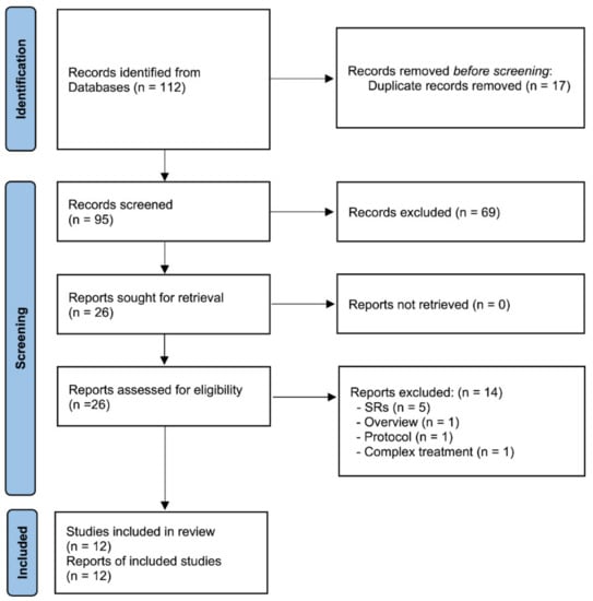 - Liberati, A.; Altman, D.G.; Tetzlaff, J.; Mulrow, C.; Gøtzsche, P.C.; Ioannidis, J.P.; Clarke, M.; Devereaux, P.J.; Kleijnen, J.; Moher, D. The PRISMA statement for reporting systematic reviews and meta-analyses of studies that evaluate healthcare interventions: Explanation and elaboration. Bmj 2009, 339, b2700. [Google Scholar] [CrossRef] [PubMed]