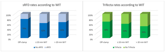 Severe renal function deterioration (sRFD) and Trifecta rates according to WIT.