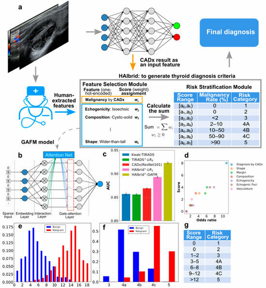 APA StyleJia, X., Ma, Z., Kong, D., Li, Y., Hu, H., Guan, L., Yan, J., Zhang, R., Gu, Y., Chen, X., Shi, L., Luo, X., Li, Q., Bai, B., Ye, X., Zhai, H., Zhang, H., Dong, Y., Xu, L., ... CAAU. (2022). Novel Human Artificial Intelligence Hybrid Framework Pinpoints Thyroid Nodule Malignancy and Identifies Overlooked Second-Order Ultrasonographic Features. Cancers, 14(18), 4440. https://doi.org/10.3390/cancers14184440