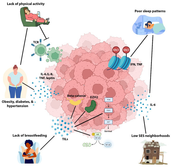 - Joshi, S.; Garlapati, C.; Aneja, R. Epigenetic Determinants of Racial Disparity in Breast Cancer: Looking beyond Genetic Alterations. Cancers 2022, 14, 1903. [Google Scholar] [CrossRef] [PubMed]