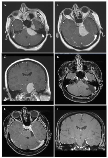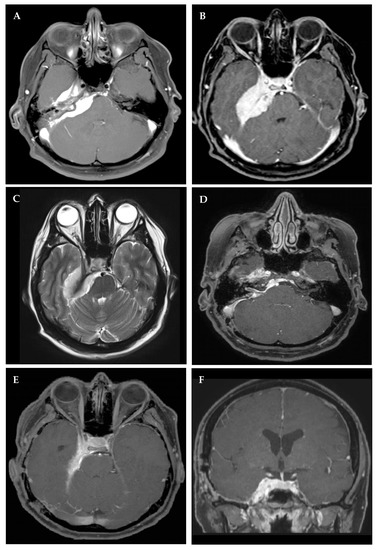 - Zentner, J.; Meyer, B.; Vieweg, U.; Herberhold, C.; Schramm, J. Petroclival meningiomas: Is radical resection always the best option? J. Neurol. Neurosurg. Psychiatry 1997, 62, 341–345. [Google Scholar] [CrossRef]