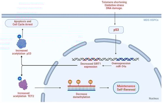 - Sun, J.; He, X.; Zhu, Y.; Ding, Z.; Dong, H.; Feng, Y.; Du, J.; Wang, H.; Wu, X.; Zhang, L.; et al. SIRT1 Activation Disrupts Maintenance of Myelodysplastic Syndrome Stem and Progenitor Cells by Restoring TET2 Function. Cell Stem Cell 2018, 23, 355–369.e9. [Google Scholar] [CrossRef] [PubMed]