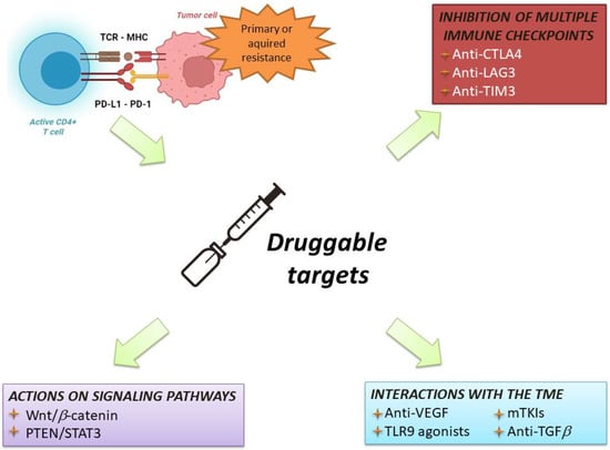 Despite the success of ICIs in the treatment of several tumours, most patients develop a resistance to ICIs. This resistance may be either primary (lack of initial response) or secondary (progression following initial disease control). The resistance can be further classified as intrinsic, if elicited by the tumour itself, or extrinsic, if due to the interaction with normal stromal cells in the tumour microenvironment (TME) [8,9,10].