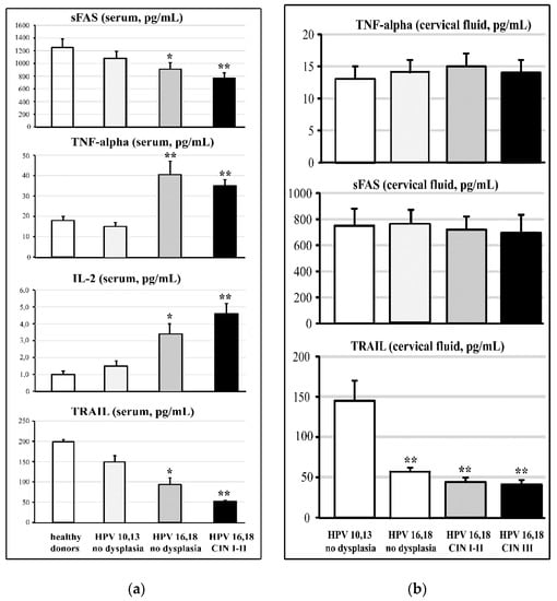 3.2. Cervical and Circulating Ligands of TNF-Alpha Apoptosis in HPV-Infected Female Patients at Different Stages of Cervical Carcinogenesis