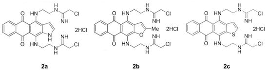 Structures of bis(chloroacetamidino)heteroareneanthraquinones 2a–c.