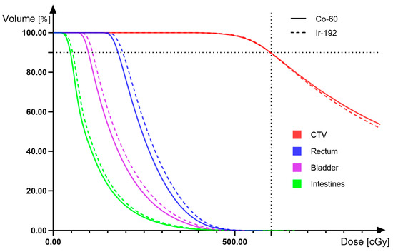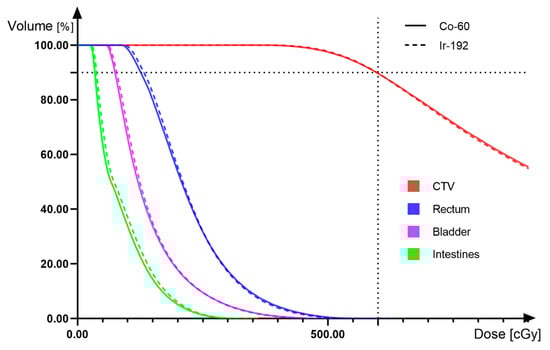 (3D HDR IC-ISBT) Dose-volume histogram comparing 192Ir and 60Co.