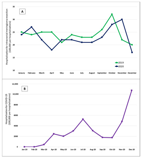 Rubens, M.; Saxena, A.; Ramamoorthy, V.; Ahmed, M.A.; Zhang, Z.; McGranaghan, P.; Veledar, E.; McDermott, M. Impact of COVID-19 on Intracranial Meningioma Resection: Results from California State Inpatient Database. Cancers 2022, 14, 4785. https://doi.org/10.3390/cancers14194785